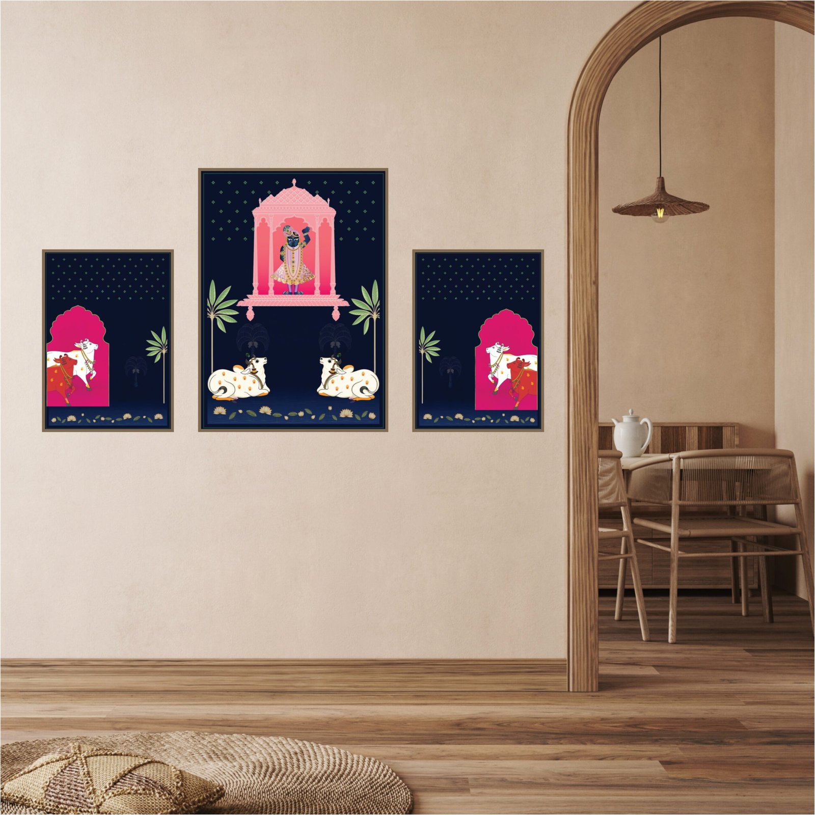 Black And Gold Shrinathji Pichwai Wall Art | Shrinathji Pichwai Painting | Katchy Print